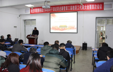 2021年12月30日,beat365唯一官方网站在基委楼101会议室召开2021年领导班子和领导干部述职述廉暨第三届教职工、工会会员代表大会第四次会议。党委常委、副校长刘勇胜、全院教职工及学生代表参加会议。