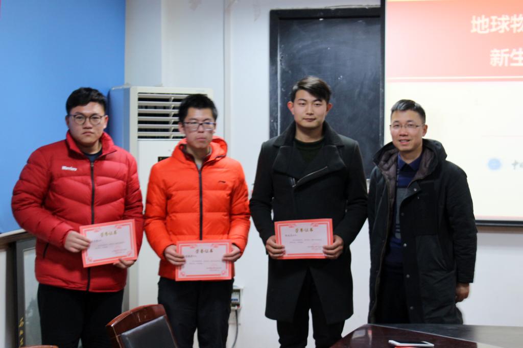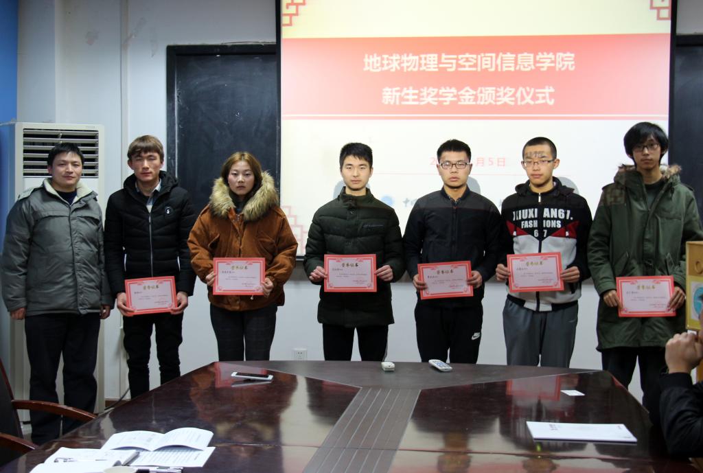 (通讯员张川 摄影祁阳阳)2018年1月5日下午,beat365唯一官方网站在物探楼214召开2017级新生入学奖学金颁奖仪式。武汉中仪物联技术股份有限公司董事长郑洪标、学院党委副书记李周波,辅导员张川、祁阳阳,2017级各班班长、团支书以及10名获奖新生参会。