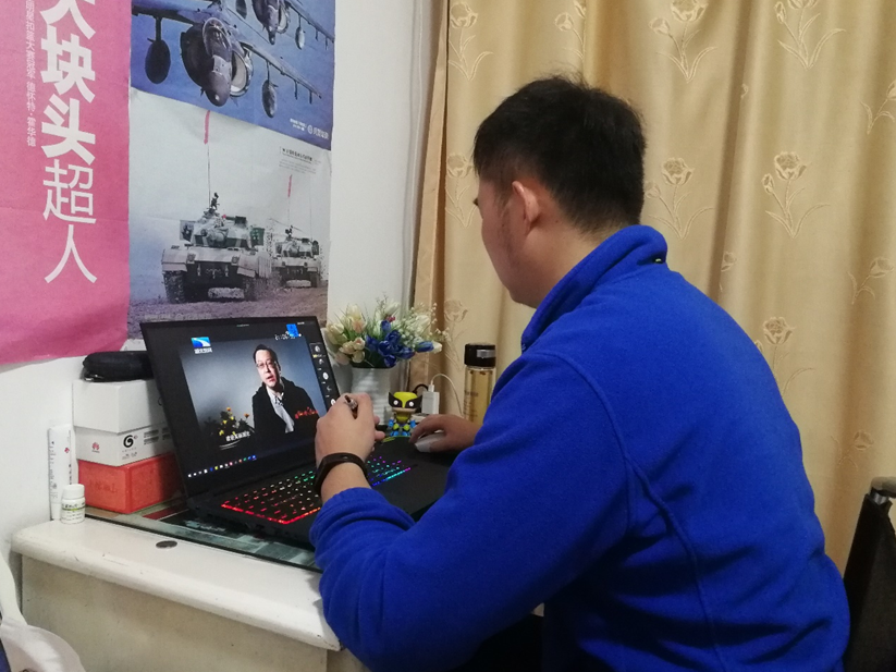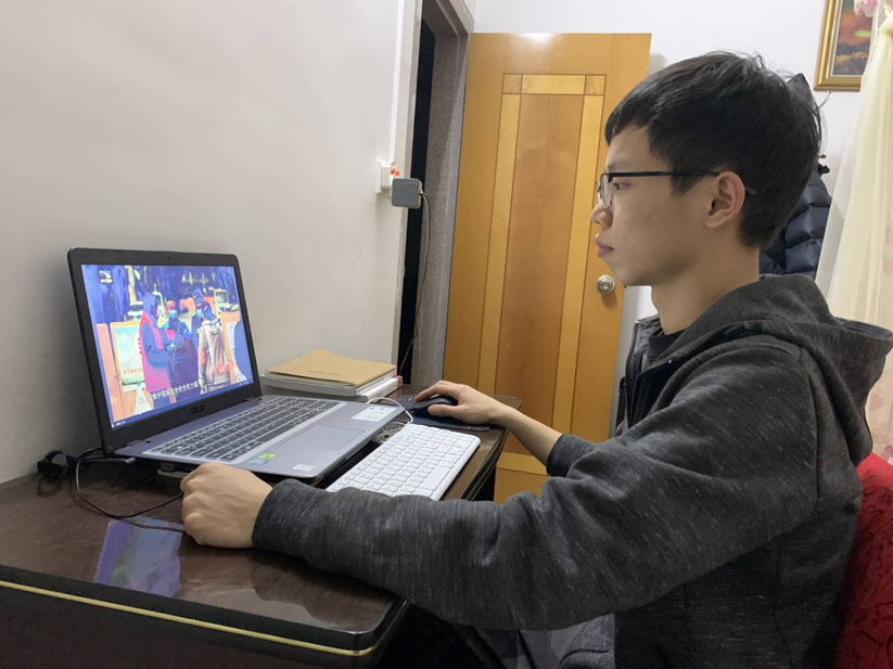 (预备党员许国森正在观看直播)
