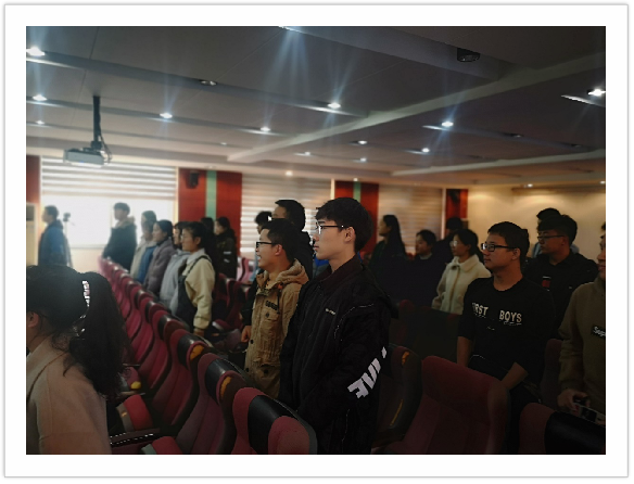 在活动开始前,每一位支部成员均提前到场签到,这体现了同学们对本次团会十分重视。9时,全体起立、奏唱国歌,主持人、来自马克思主义学院的冯梅同学宣布“走弘扬长征精神,传承红色基因”主题团会正式开始。