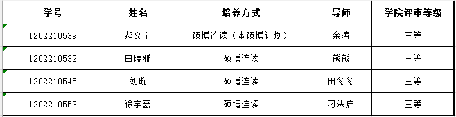10月24日研究生院公布了《2022年硕博连读研究生选拔结果公告》,beat365官网4名2022级硕士研究生被批准为beat365官网2022年硕博连读研究生,符合博士生学业助学金参评资格,经个人申请、材料审核及学院评审,现将推荐名单进行公示: