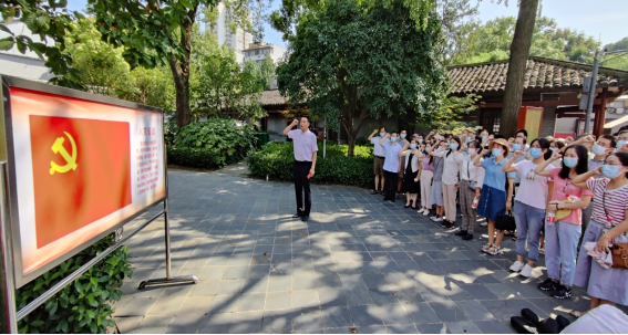 在中央农民运动讲习所,学院党委书记马彦周同志带领教工党员重温入党誓词,并围绕农讲所成立的背景、发展历程以及为新中国诞生做出的贡献等方面,为全体党员上了一堂生动的党课。他号召广大党员在教书育人的工作过程中,牢记立德树人根本任务,坚定为党育人、为国育才初心使命,树牢 “四个意识”、坚定“四个自信”,做到”两个维护“,将党的发展历史落实到课程思政中。
