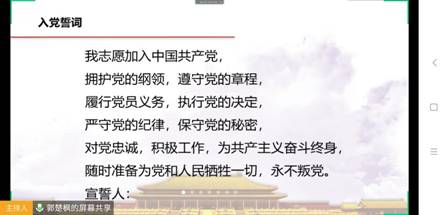 九点四十五,活动正式开始,首先beat365唯一官方网站地探专业硕士研究生纵向党支部支部书记郭楚枫带领大家唱国歌,重温入党誓词。