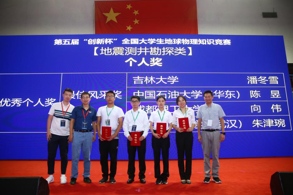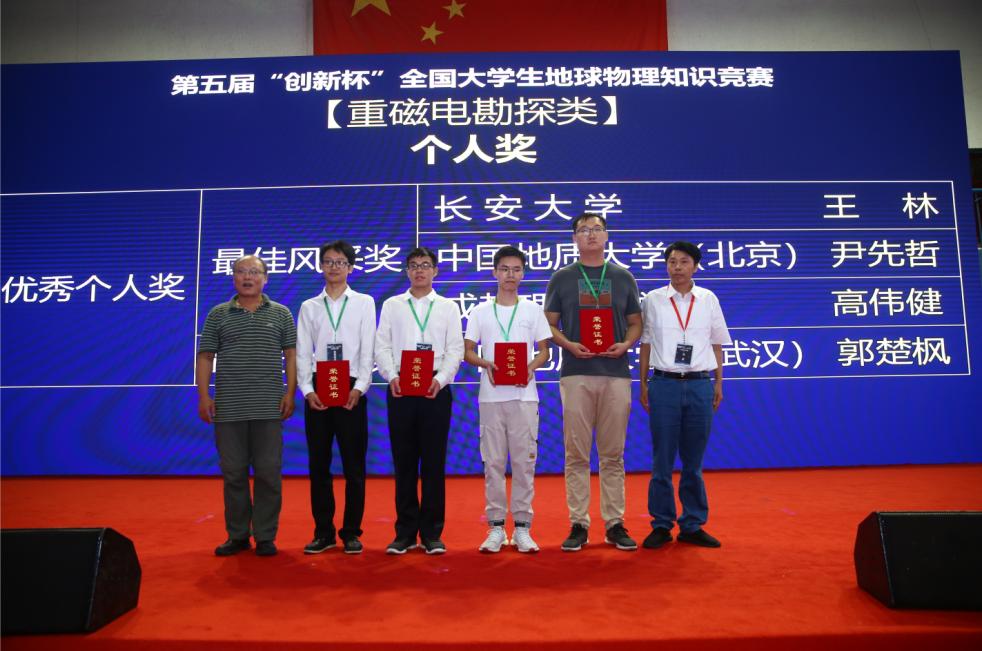 由师学明教授指导,硕士生郭楚枫、黄亮,本科生武雨纯、薛纪岩组成的代表队荣获重磁电勘探类比赛特等奖;由谢祖军副教授指导,硕士生谢媛、本科生郑瑞、唐笑天、林厚羽组成的代表队荣获固体地球物理类比赛一等奖;由朱培民教授指导,本科生朱津琬、张金晗、靖剑坤、关玉蕊组成的代表队荣获地震测井勘探类比赛一等奖。beat365唯一官方网站2018级硕士生谢媛荣获最佳风采奖,2018级硕士生郭楚枫、2016级本科生朱津琬荣获最佳个人奖。学校代表队由beat365唯一官方网站执行院长熊熊教授领队。