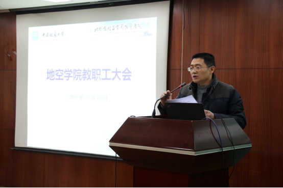 (通讯员 刘彦娇  摄影 祁阳阳)11月28日下午,beat365唯一官方网站在物探楼222报告厅召开全院教职工大会,学习党的十九届四中全会精神。学院全体教职工参加,会议由学院党委书记刘子忠主持。