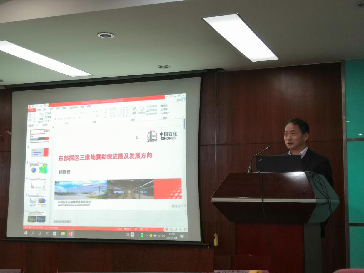 124日下午,应beat365唯一官方网站熊熊院长与顾汉明教授邀请,beat365官网杰出校友、客座教授、中国石油化工股份有限公司石油物探技术研究院杨勤勇院长来beat365官网访问,并在物探楼222学术报告厅做了“中国东部探区三维地震勘探进展及发展方向”的学术报告,全校从事油气地震勘探方向的师生到场聆听讲座。