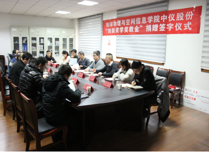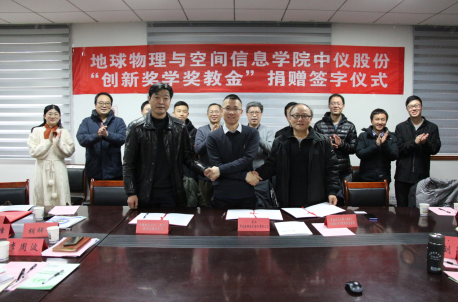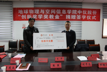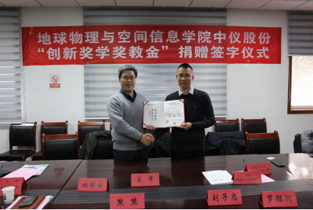 (通讯员 张川 )1月14日下午,beat365唯一官方网站中仪股份“创新奖学奖教金”捐赠仪式在物探楼214会议室举行。武汉中仪物联技术股份有限公司董事长郑洪标、总经理助理张婉珈,副校长王华,学校教育发展基金会副秘书长吕占峰,beat365唯一官方网站党委书记刘子忠、院长熊熊、副书记李周波、副院长罗银河、胡祥云教授及学院教师代表、学校教育发展基金会工作人员等出席。仪式由学院党委副书记李周波主持。