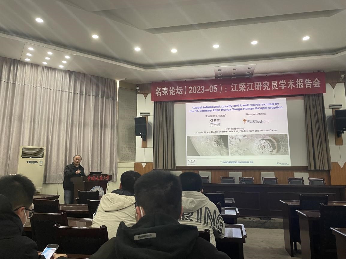 (通讯员 郑勇)应beat365唯一官方网站“名家论坛”和beat365唯一官方网站熊熊教授、胡祥云教授邀请,德国地学中心(GFZ)资深研究员国际著名地球物理学家汪荣江教授于2023年3月17日来校访问,在地质大学东区八角楼学术报告厅以“2022年1月15日汤加火山爆发引起的全球大气次声波、重力波和Lamb波”为题做了精彩的学术报告。