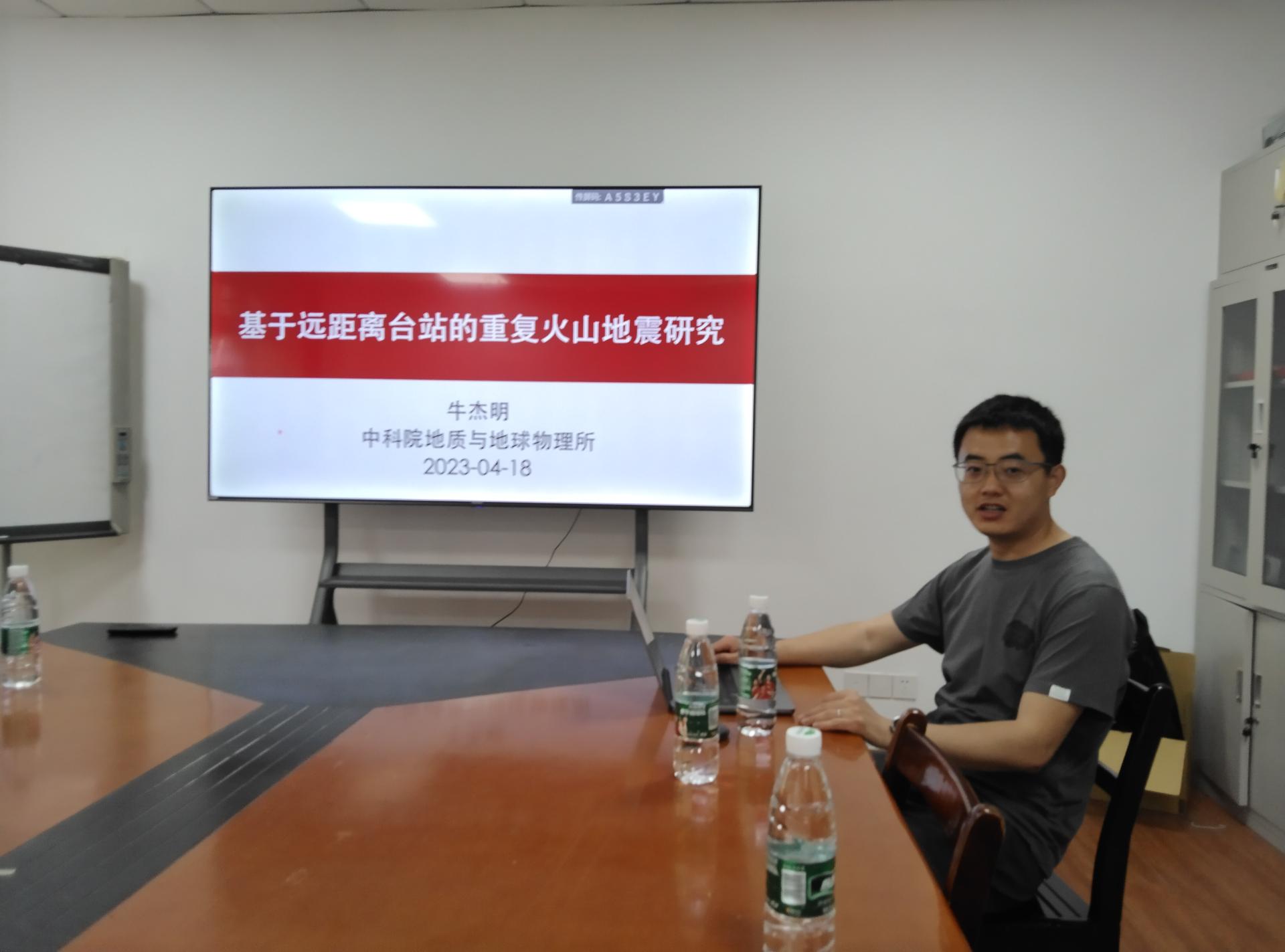 (通讯员 何平)4月18日上午,应beat365唯一官方网站熊熊院长与何平副教授邀请,省部级人才计划入选者、中国科学院地质与地球物理研究所牛杰明副研究员做客beat365官网,并在物探楼216会议室做了“基于远距离台站的重复火山地震研究”的学术报告,全校近20位师生到场聆听讲座。