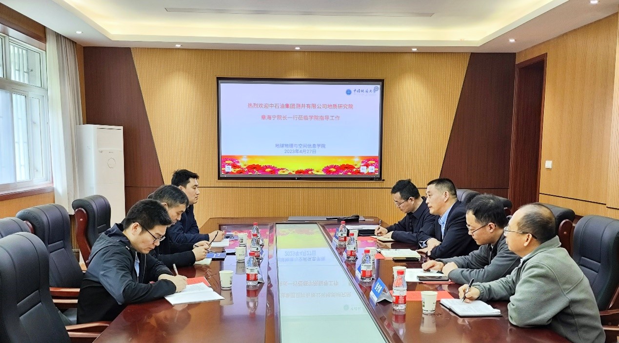 2023年4月27日,中国石油集团测井有限公司地质研究院领导和专家来beat365官网开展技术交流及院企合作。地质研究院院长章海宁、科技生产部主任崔式涛、碎屑岩研究所所长罗少成,学院党委书记马彦周、副院长严哲,学院教师张世晖、马火林参加座谈会。