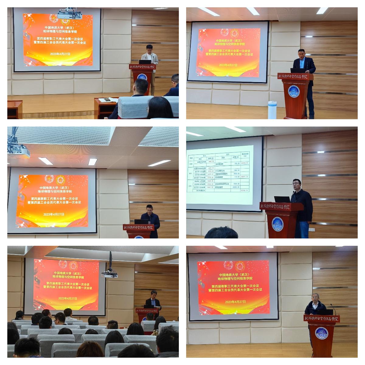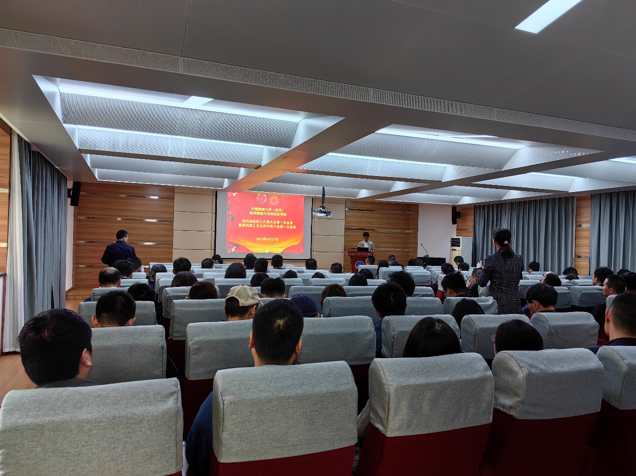 2023年4月28日下午14:30,beat365唯一官方网站在物探楼222报告厅召开第四届教职工大会第一次会议暨第四届工会会员大会第一次会议。学院全体教职工参加会议。会议由学院党委副书记黄金波主持。
