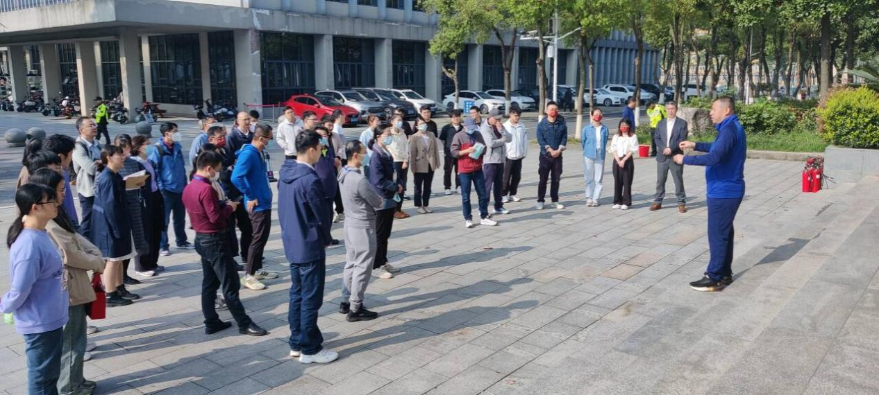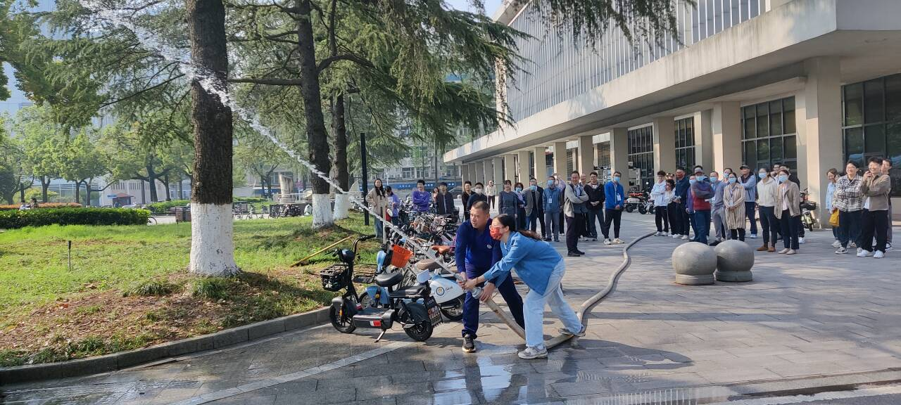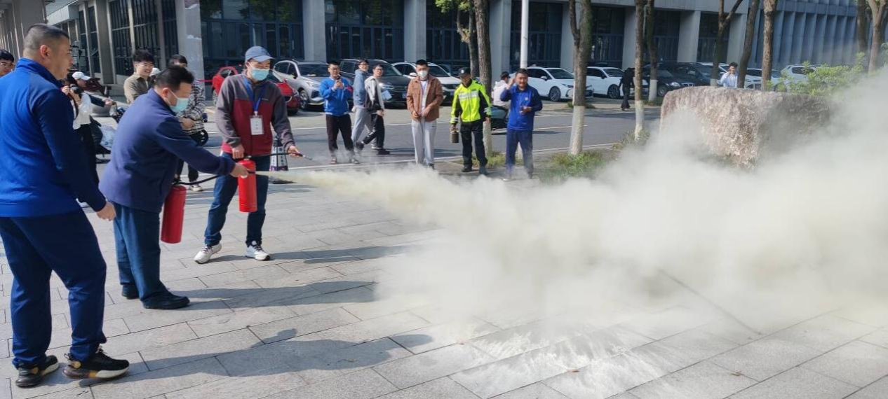 随后,消防科工作人员介绍干粉灭火器、二氧化碳灭火器灭火原理以及消防水带的构造和功能,并现场教授灭火器实际操作要点和使用。