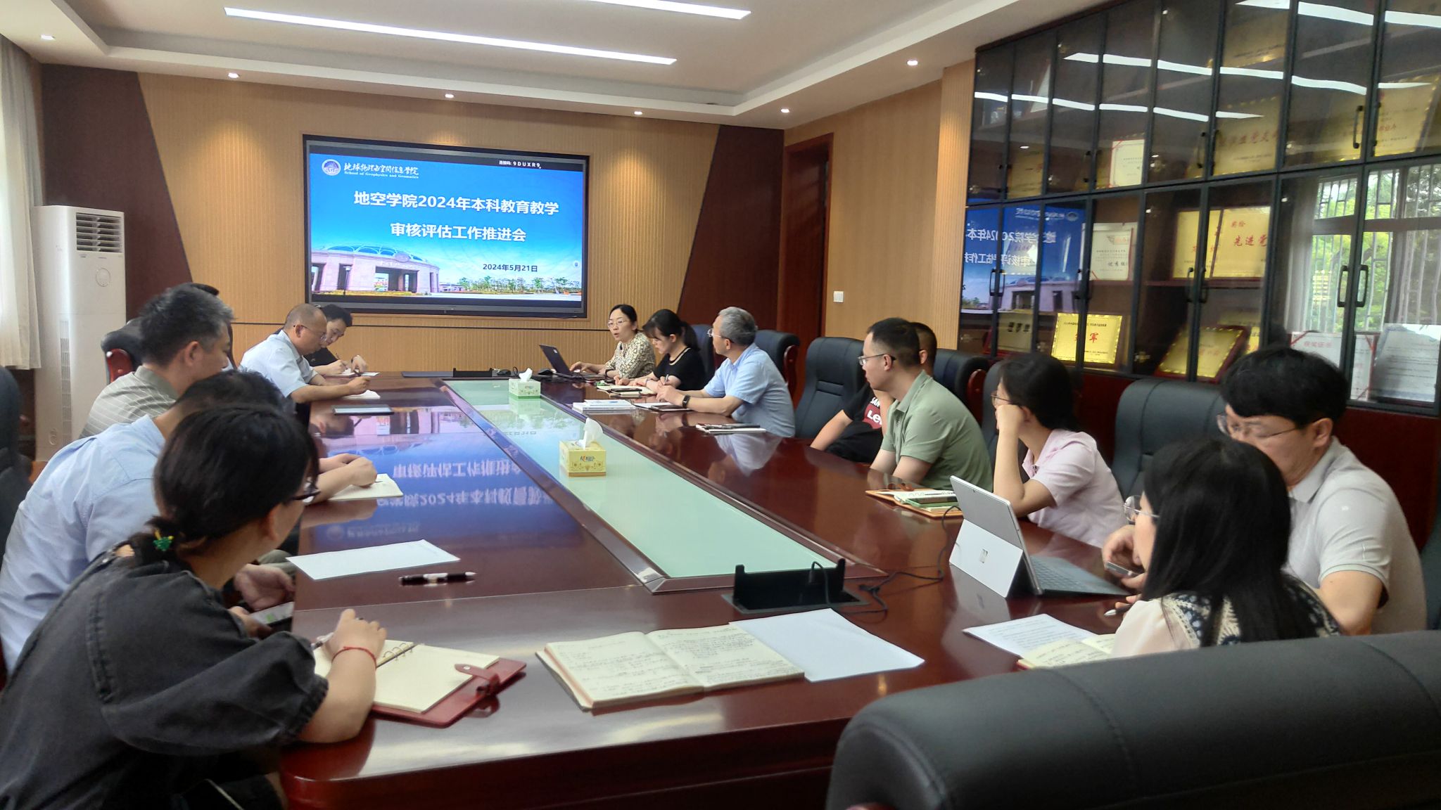 (通讯员曹雪莲)根据学校《2024年本科教育教学审核评估工作方案》的统一部署,为确保本科教育教学审核评估工作的顺利进行,学院于5月21日下午在物探楼219会议室召开了本科教育教学审核评估工作推进会。党委书记马彦周、院长熊熊出席了会议并发表了重要讲话,全体在院领导、各专业负责人、系主任、教学秘书等相关人员参加会议。