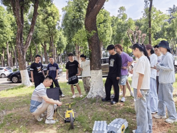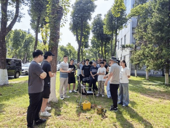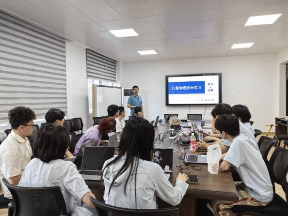 此次实习由《行星物理综合实习》课程团队教师带队于5月13日-6月24日开展。实习和实践活动内容包括:1)参观“武汉客厅”航天科普展,了解我国从建国初期到现今在航空航天与国防科技领域取得的重大成果,激发学生的爱国热情和科研情怀;2)夜间天文观测,近距离感受月球表面的形貌特征;3)参观武汉大学测绘遥感精神教育基地,与其行星物理科研团队进行交流讨论,激发学生投身科研、探索宇宙奥秘的热情;4)在华中科技大学引力中心/精密重力测量科学中心参观学习和交流讨论,了解国家天琴计划、嫦娥七号月震仪等精密仪器的研制原理、参观引力中心山洞新旧实验测量装置等;5)学习探地雷达和地震仪的工作原理及其在行星科学上的应用,开展探地雷达和地震数据获取实习;6)行星遥感和重磁软件学习,实现行星遥感和地球物理等数据的处理和成图;7)学生自由选题(月震和火震、火星形貌和分布特征、月球重力地形和撞击盆地等)进行科研分组汇报,提高学生的科研素养、专业技能和表达能力等。